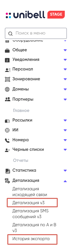 Подробнее о детализации и истории экспорта см. «Детализация и история экспорта» в разделе «Личный кабинет» на примере пользователя.